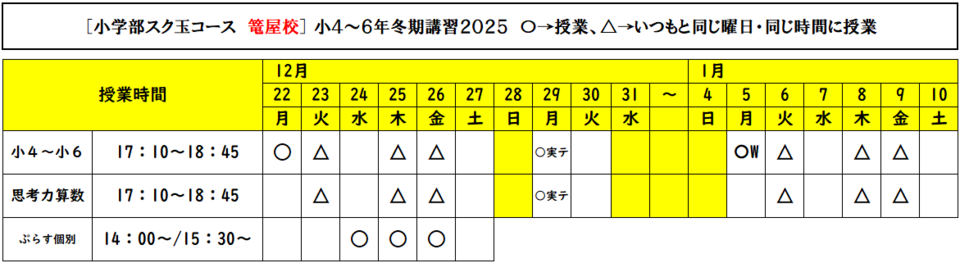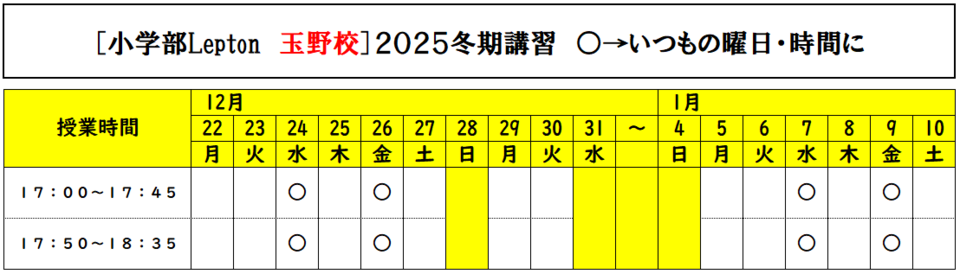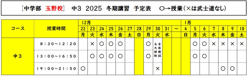 HOME > スク玉ブログ > 冬期講習2025スケジュール(予定表のみ)