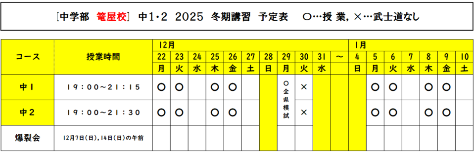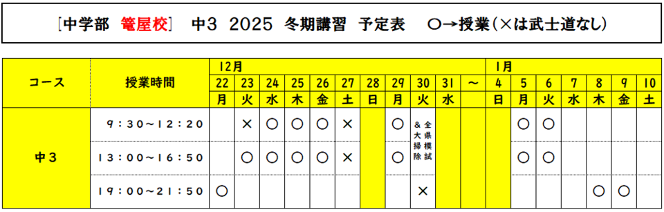冬期講習2025スケジュール(予定表のみ)