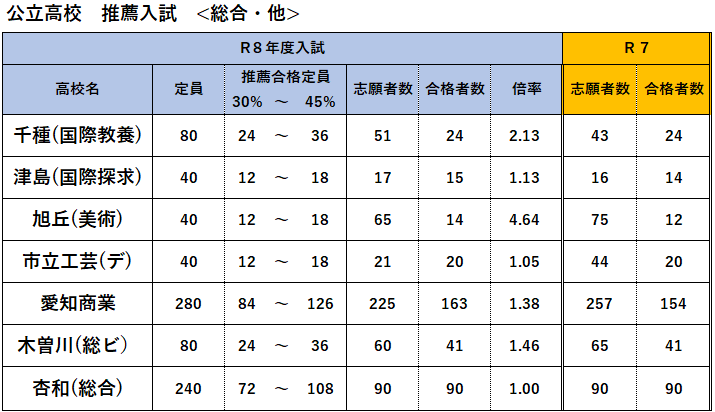 HOME > スク玉ブログ > R8公立高校推薦入試の合格者数まとめ