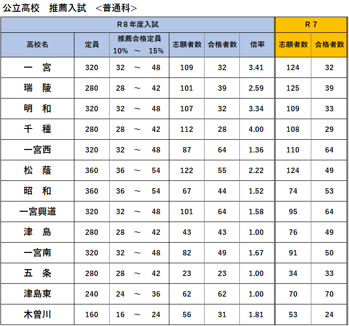 R8公立高校推薦入試の合格者数まとめ