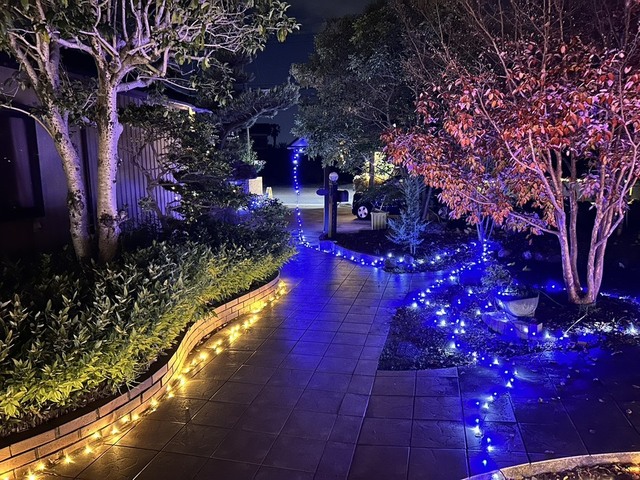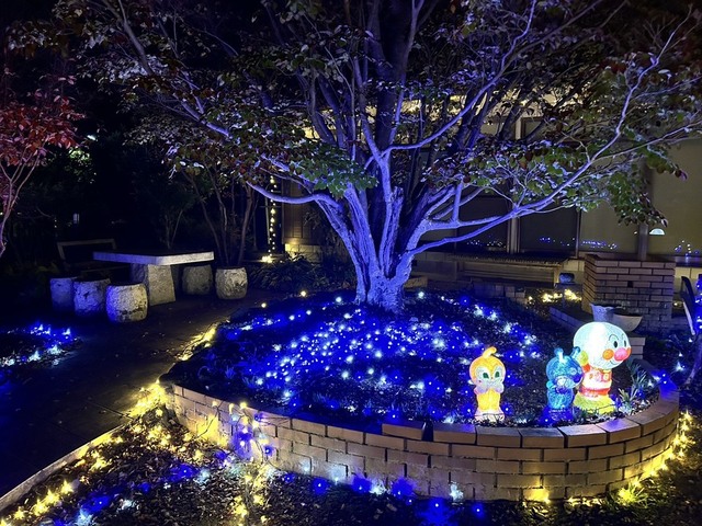 玉野校では、月曜日から土曜日の夜はキラキラ光っています。毎年、少しずつ買い足しているイルミネーションですが、今年は断線したものが少なく、アンパンマン軍団も無事でした。