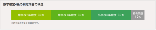 つまり4級なら、中2・中1・小6の範囲から、それぞれ約30%ずつ出題されるイメージです。