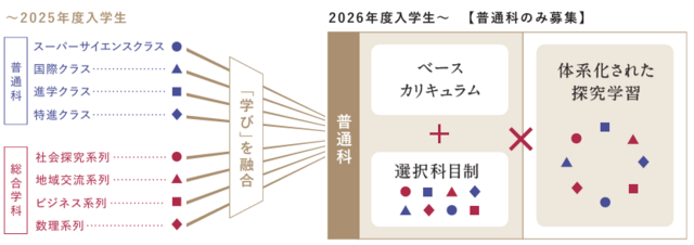 ・特進、スーパーサイエンス、進学、国際のコース区分の廃止