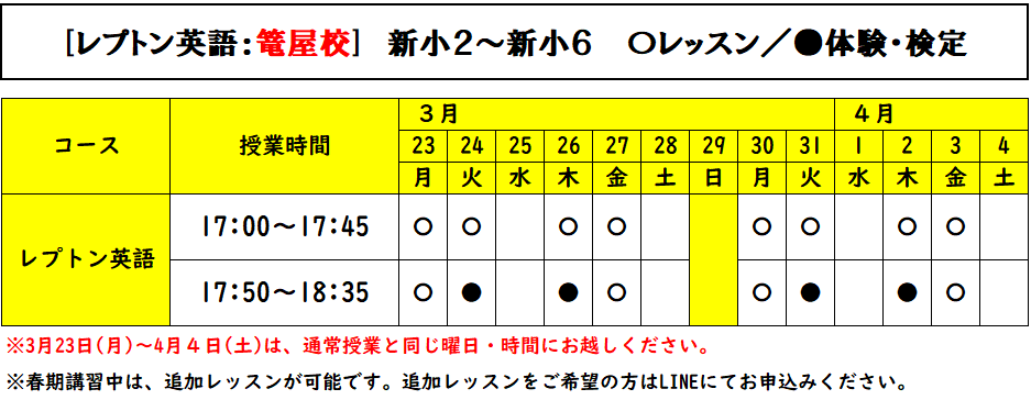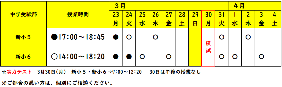 ※小学生の春期講習は、原則「在籍生のみ」対象です。