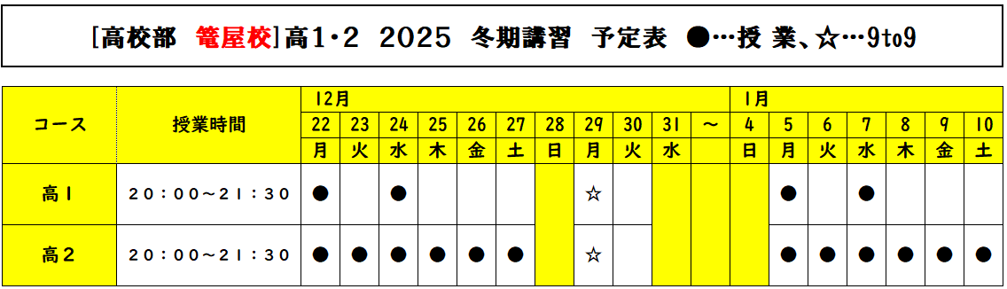 ※高校生の冬期講習は、原則「在籍生のみ」対象です。