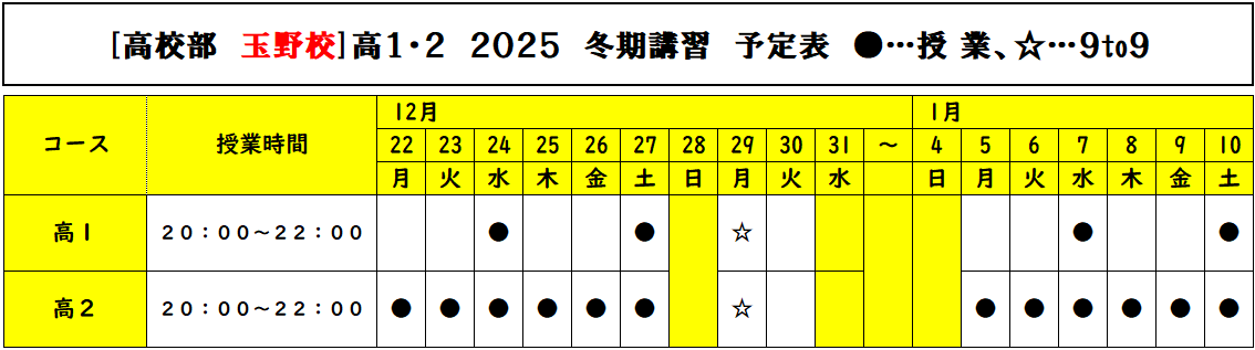 【玉野校】スク玉高校部の冬期講習 日時・詳細